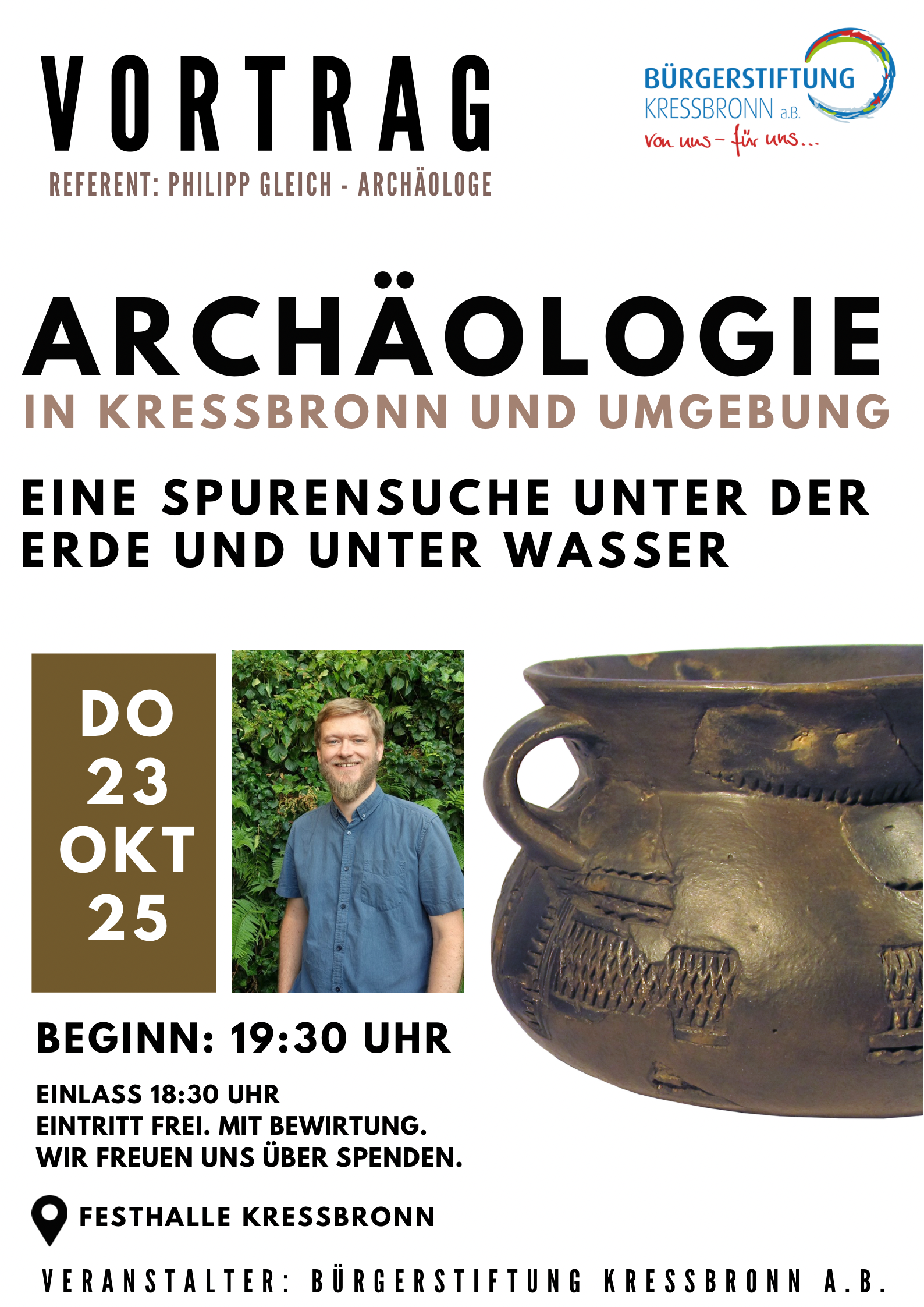 Vortrag der Bürgerstiftung Kressbronn a.B. am Donnerstag, den 23. Oktober um 19.30 Uhr in der Festhalle Kressbronn mit Philipp Gleich zum Thema Archäologie in Kressbronn und Umgebung